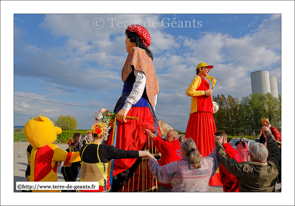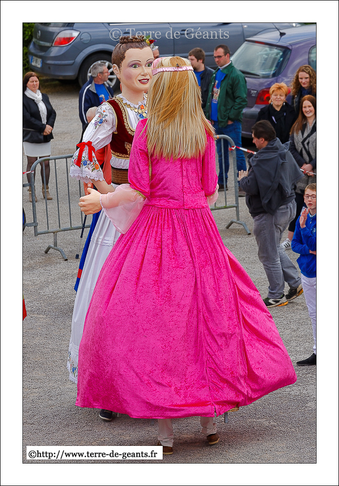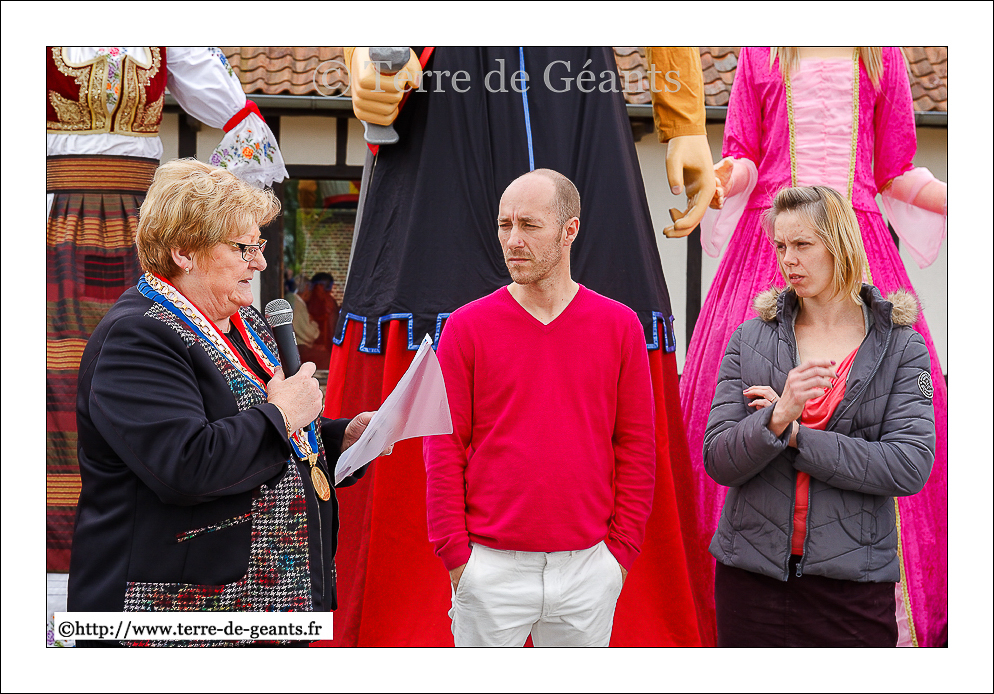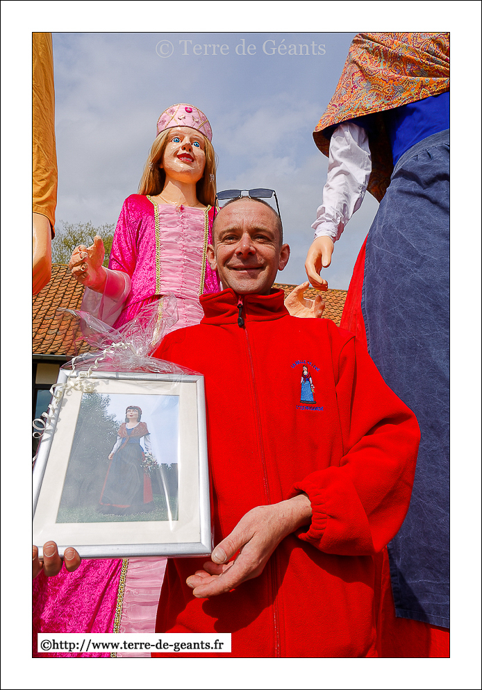 Ukko - UXEM (F), le parrain, La Belle Hélène - Les Amis de Gambrinus - STEENVOORDE (F), la marraine donnent la main à Alicia Princesse des Anges - TERDEGHEM (F)