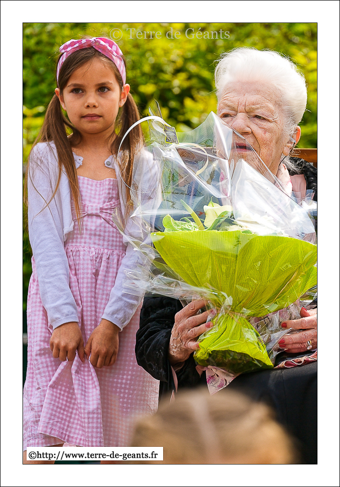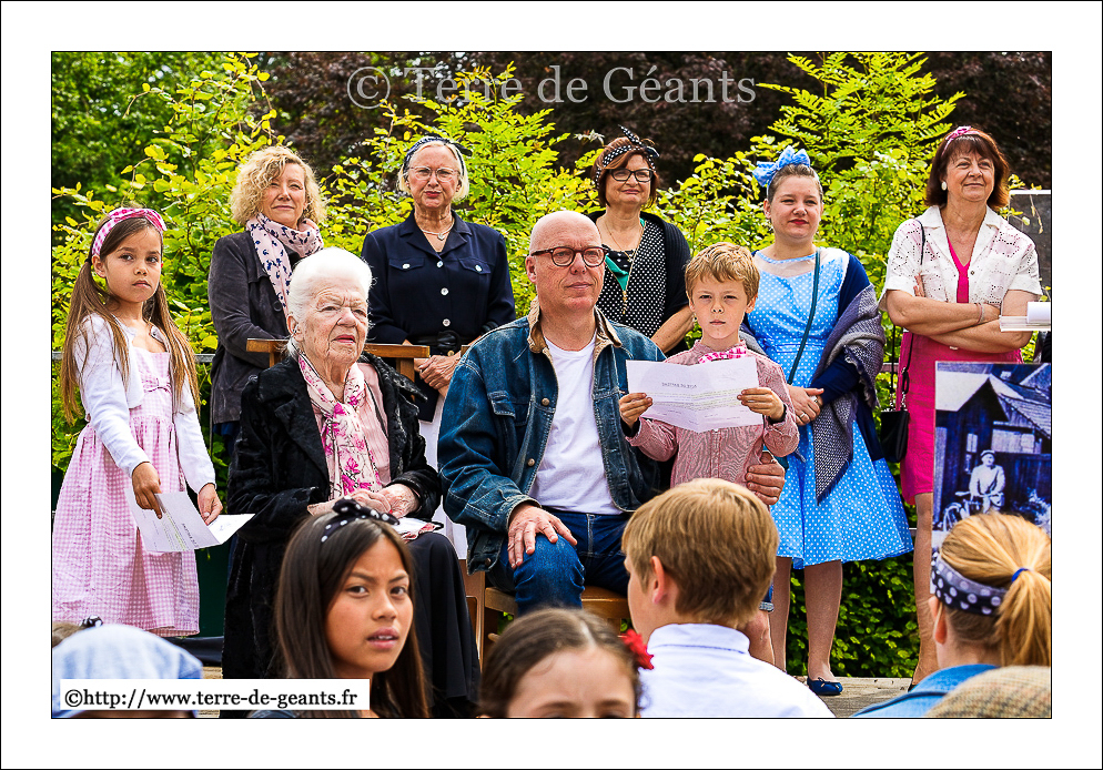Les marraines , l'actrice Jenny Clève, (adulte) et Cléo Marszalek (enfant) du Géant Jean Gab'lou