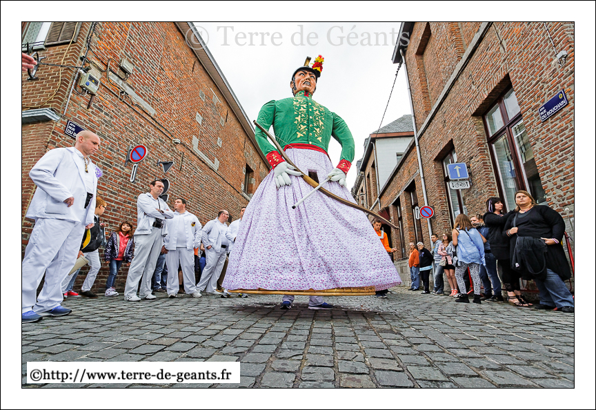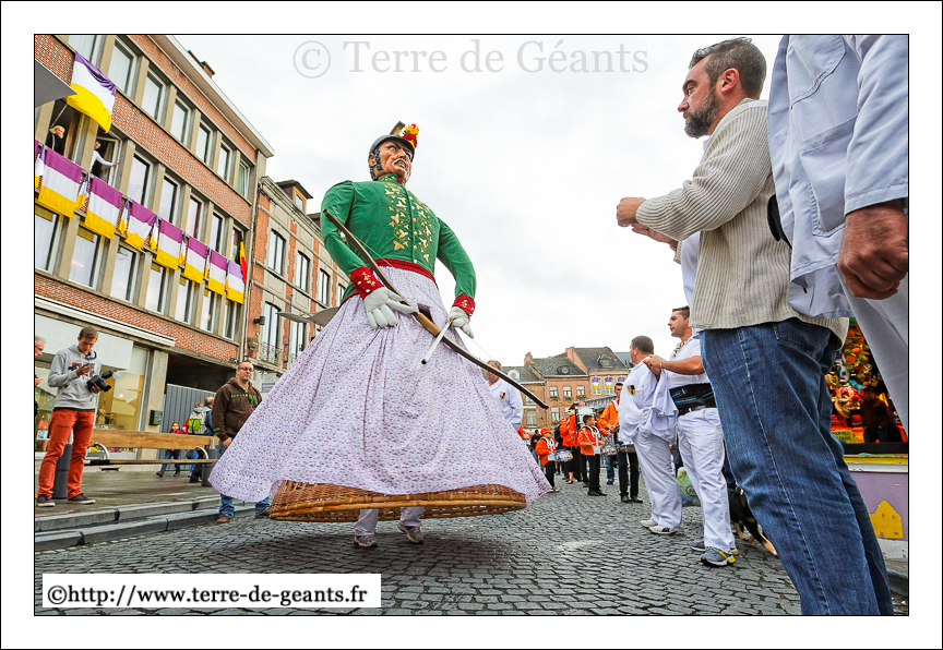Ath (B) – Ducasse 2014 – Préparatifs sur les Géants et sortie de Tirant l’Ancien accompagné par le Touyout Band (22/08/2014)