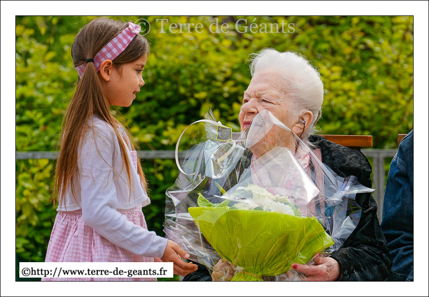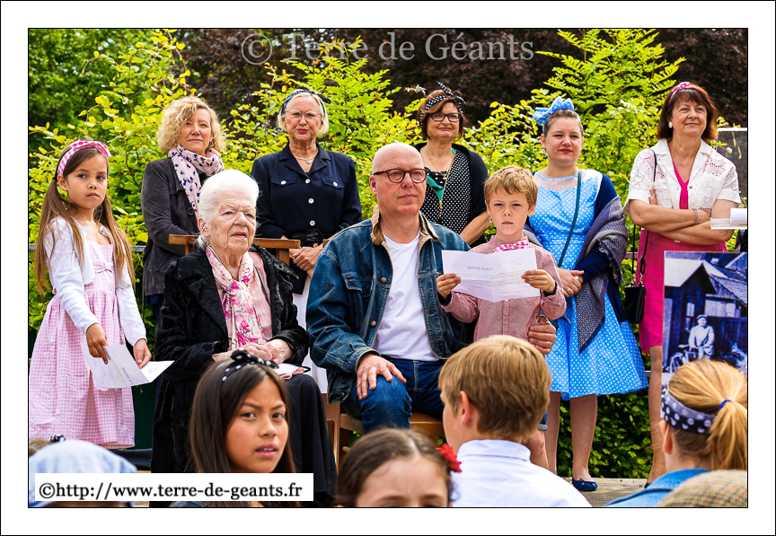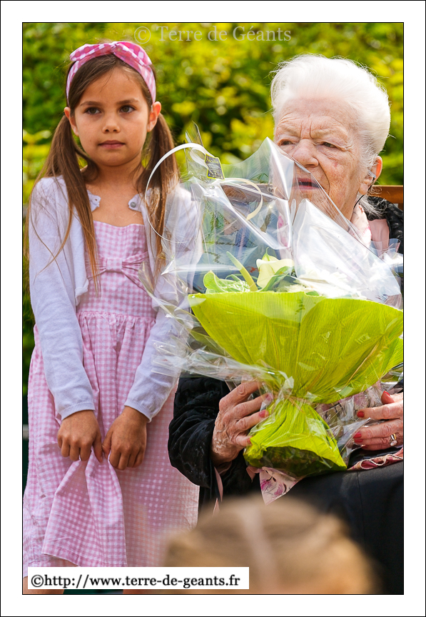 Les marraines , l’actrice Jenny Clève, (adulte) et Cléo Marszalek (enfant) du Géant Jean Gab’lou